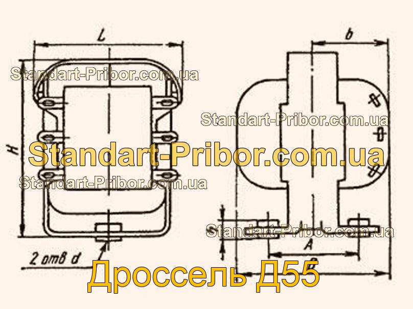 Дроссель Д55 низкочастотный малогабаритный унифицированный с одной основной и одной компенсационной обмоткой и индуктивностью 0,02 Гн.