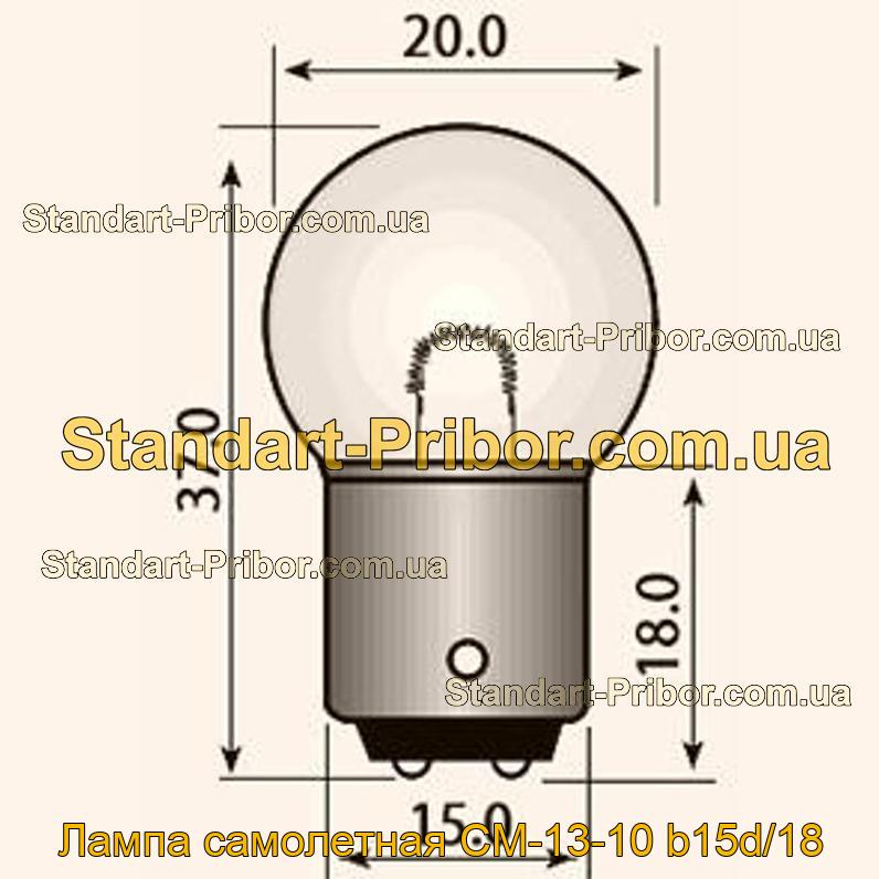 Лампа накаливания самолётная СМ-13-10 малогабаритная двухконтактная в прозрачной колбе со штифтовым цоколем на номинальное напряжение 13 В и мощностью 10 Вт.